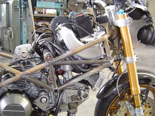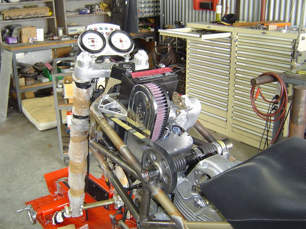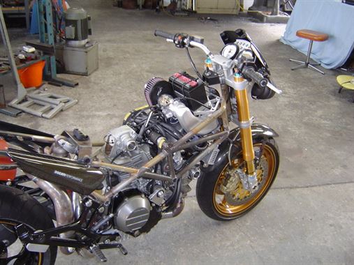 The bike was eventually abandoned by the owner and is still unfinished. It just requires wiring, a small amount of fuel plumbing and tuning.